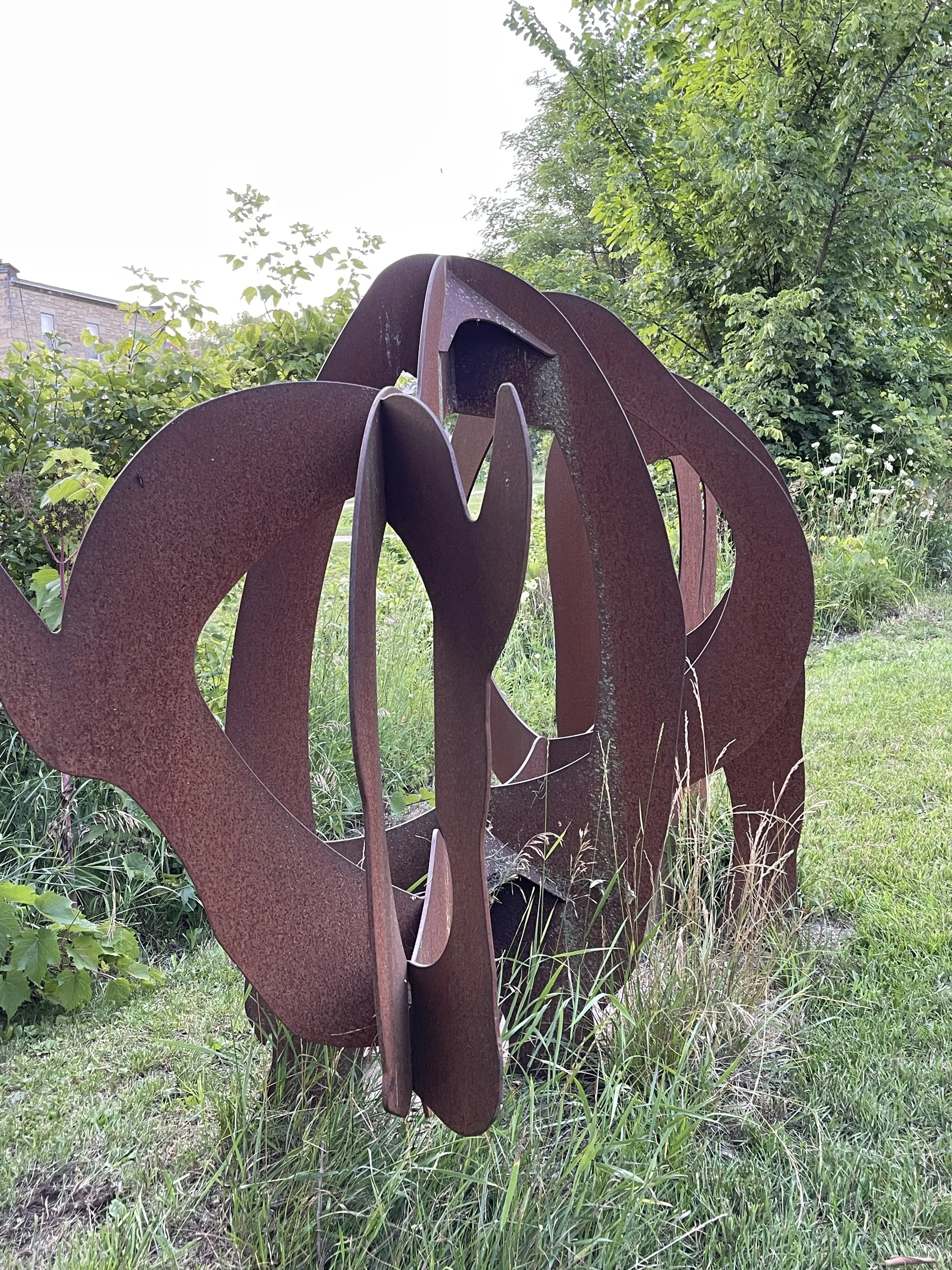 Our third sculpture is is located at the NW corner of High and Commerce streets, on land owned by Dr. Aarron and Monica Dunn. “Shape Things Take” is a sculpture by artist Peter Flanary.